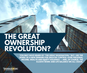 You may have heard of “The Great Resignation,” but I see the spark of a new demand for greater control over personal income, wealth and equity holdings — and, of course, the elusive work and life balance we all want. I see the declaration of independence from traditional 9-5 and the spark of “The Great Ownership Revolution.”
